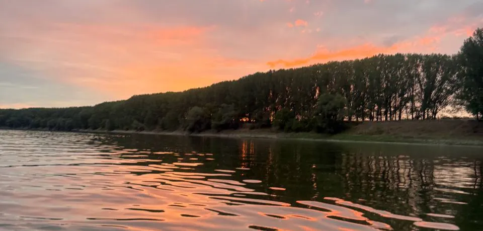- Закат на воде — особая магия: золотые и розовые оттенки реки, свежий воздух и звуки природы
